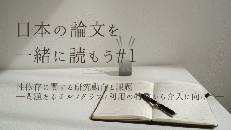 「日本の論文を一緒に読もう」シリーズは、日本のポルノ依存症関連の研究論文を皆さんといっしょに読んでいくという企画です。 オープンアクセスの場合はそのURLも記載しますので、興味があればぜひ全文を読んでみてください。 それでは、すべてのポルノ依存症研究 […]