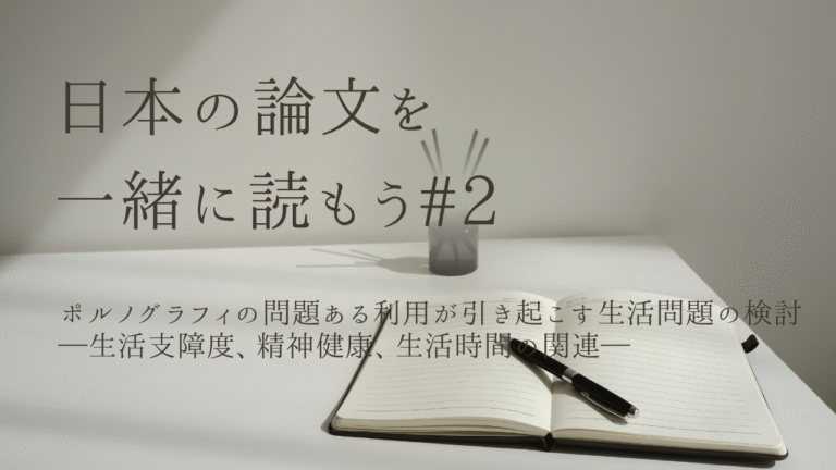 「日本の論文を一緒に読もう」シリーズは、日本のポルノ依存症関連の研究論文を皆さんといっしょに読んでいくという企画です。 […]