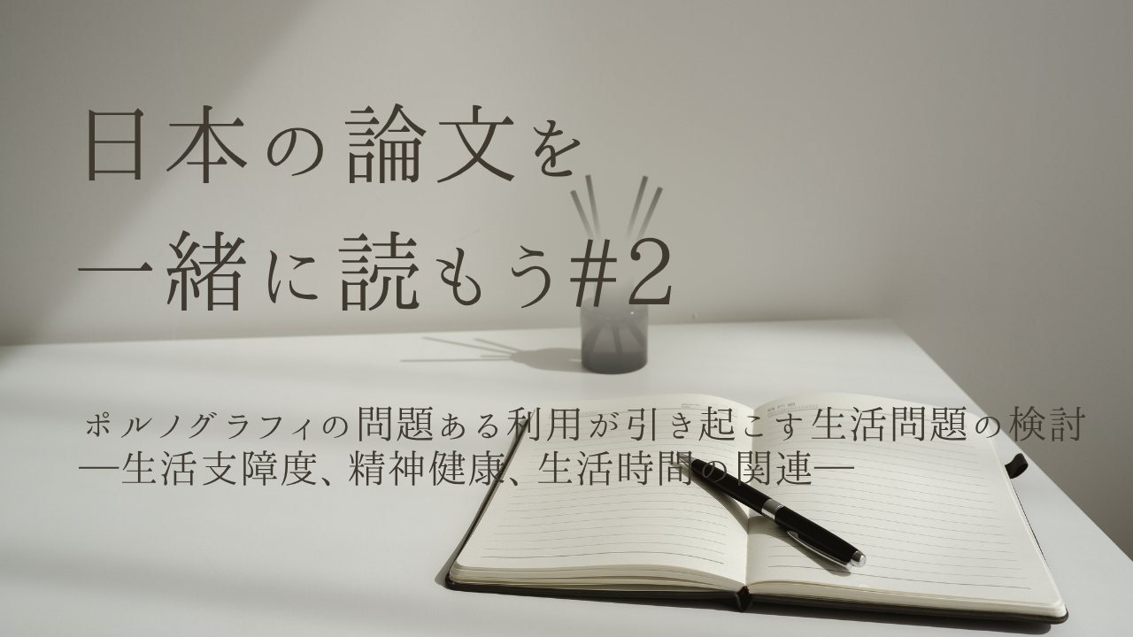 今回皆さんにご紹介する論文のタイトルは「ポルノグラフィの問題ある利用が引き起こす生活問題の検討 ─生活支障度、精神健康、生活時間の関連─」です。